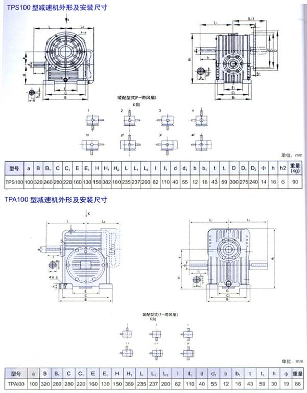 蝸桿減速機(jī)》設(shè)計制造。TP型平面包絡(luò)環(huán)面蝸桿減速機(jī)(JB/T9051-1991)為平面一次包絡(luò)蝸桿減速機(jī)傳動。中心距:100、125、160、200、250、315、400、500。速比:10、12.5、16、20、25、31.5、40、50、60。平面環(huán)面包絡(luò)蝸桿減速機(jī)是一種新興的傳動裝置,其承載能力大,傳動效率高,結(jié)構(gòu)緊湊、合理。